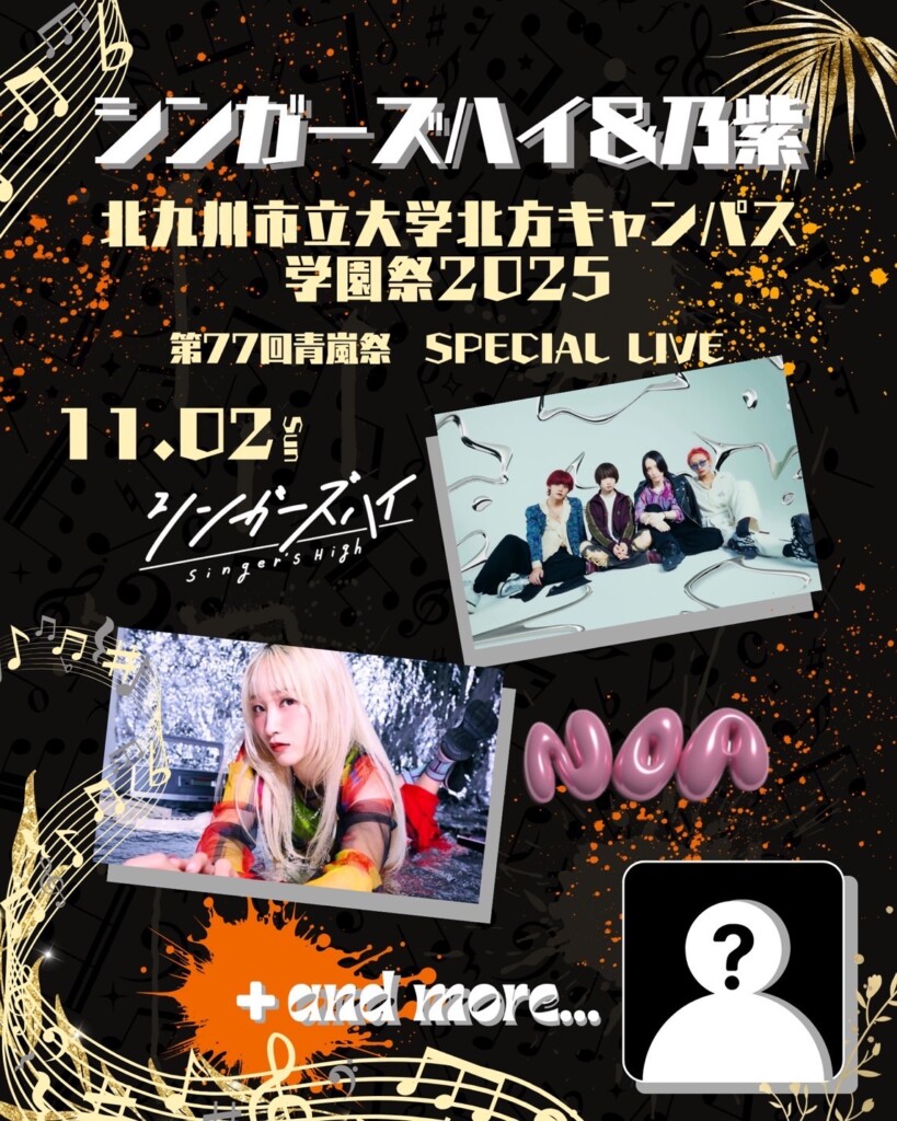 2025年11月2日(日)に北九州市立大学北方キャンパスにて開催する『第77回青嵐祭 Special Live』に出演することが決定いたしました!
